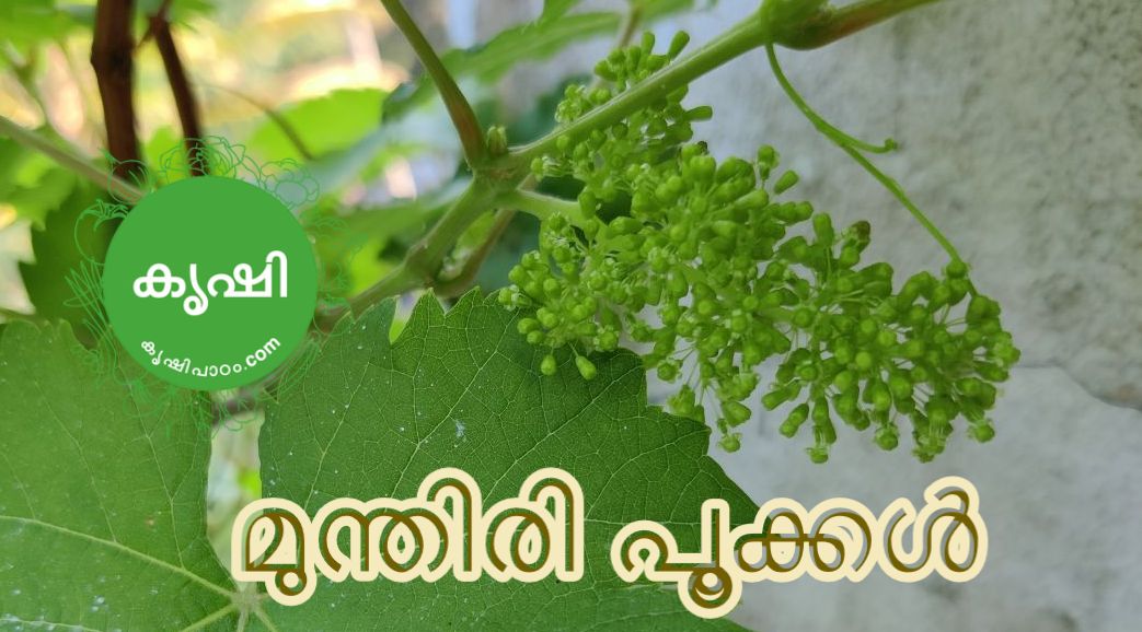 ചെടി കാട് പോലെ വളര്ന്നു, കായ ഉണ്ടാവുന്നില്ല – പലരും പറയുന്ന പരാതി ആണിത്, മുന്തിരി ചെടികളില് അവയുടെ കൊമ്പ് കോതല് പരമ പ്രധാനമാണ്. 1.5 വര്ഷം പ്രായമായ ചെടികളിലെ പെന്സില് വണ്ണമുള്ള ശാഖകളിലാണ് പൂക്കള് ഉണ്ടാവുക, വര്ഷത്തില് 3 തവണ മുന്തിരി പൂക്കും. മഴയില്ലാത്ത സമയം നോക്കി പ്രൂണിംഗ് ചെയ്യാം, ഞാന് ഫെബ്രുവരി ആദ്യ മാസത്തില് ചെടിയില് പ്രൂണിംഗ് നടത്തി. പെന്സില് വണ്ണമുള്ള ശാഖകള് നിര്ത്തി, ചെടിയിലെ മറ്റിലകള്, സ്പ്രിംഗ് വള്ളികള് ഇവ മുറിച്ചു കളഞ്ഞു. പ്രൂണിംഗിനു ശേഷം ചെടി കണ്ടാല് നമ്മുടെ തല മൊട്ടയടിച്ചതു പോലെ ഇരിക്കും. ഇനി ചെടിയില് ഉണ്ടാവുന്ന ശിഖരങ്ങളില് ഇലകളും അതോടൊപ്പം പൂക്കളും പ്രത്യക്ഷപ്പെടും. പൂവിട്ട ശേഷം 3 മാസം കൊണ്ടാണ് കായ പഴുത്തു തുടങ്ങിയത്, ഈ ഖട്ടത്തില് കായകള് പ്ലാസ്റ്റിക്ക് കവറുകള് കൊണ്ട് പൊതിഞ്ഞു സൂക്ഷിക്കുന്നത് നല്ലതാണ്.